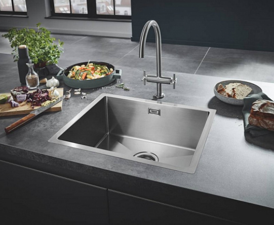 1) Мойка для кухни Grohe K700 46,4х46,4 см нержавеющая сталь матовая