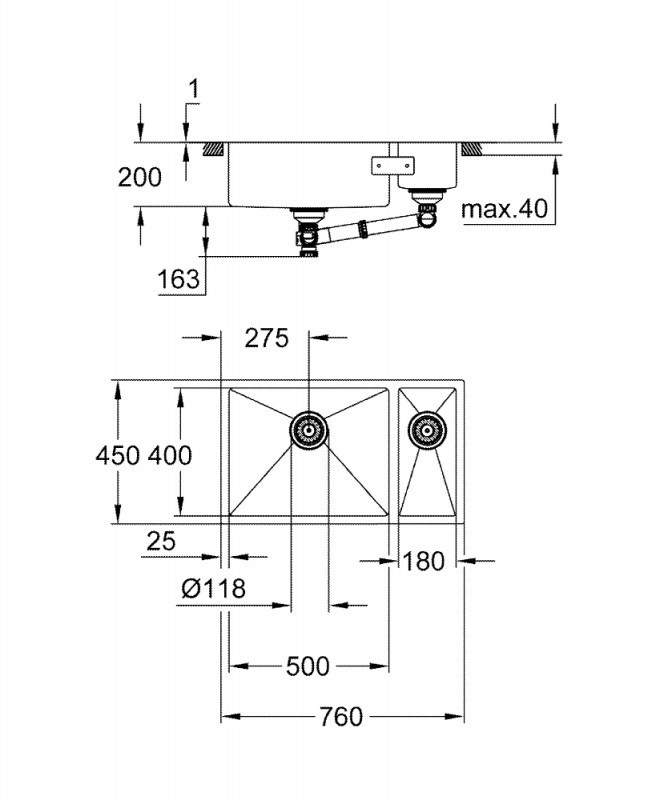 1) Мойка для кухни Grohe K700 76х45 см нержавеющая сталь матовая