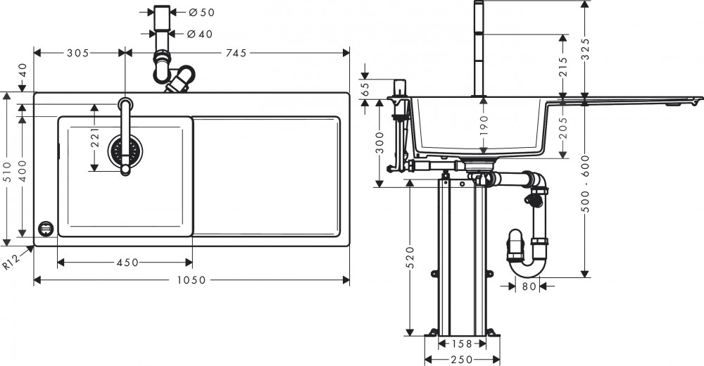 1) Мойка для кухни Hansgrohe C51 C51-F450-12