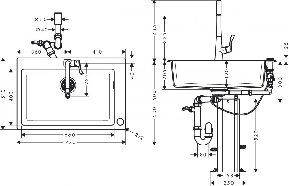 1) Мойка для кухни Hansgrohe C51 C51-F660-02