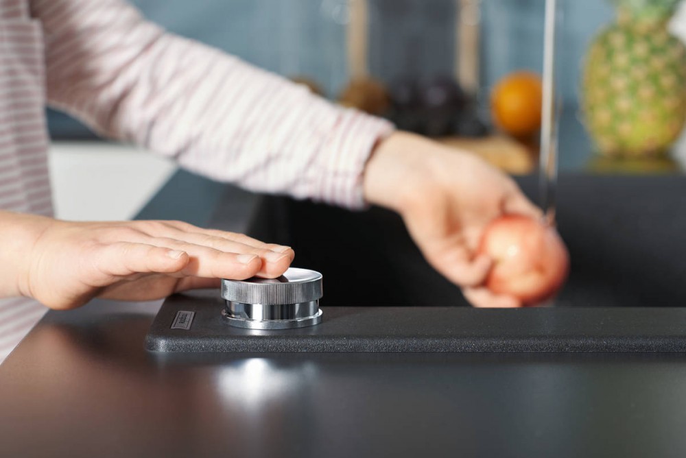 - состоит из: встроенной раковины, однорычажного кухонного смесителя на 2 отверстия, блока управления, шланговой коробки, автоматического комплекта для сбора отходов и перелива