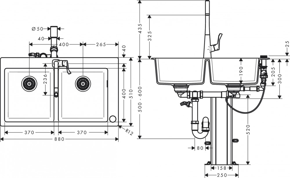 1) Мойка для кухни Hansgrohe C51 C51-F770-05