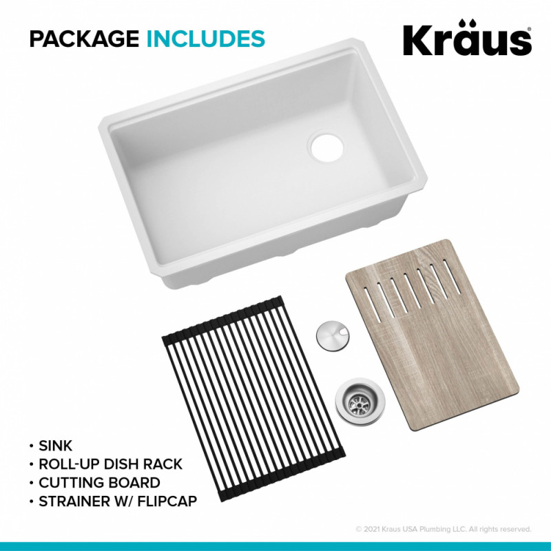 Мойка для кухни Kraus Bellucci 81,3х48,2 см под столешницу композитный гранит белый KGUW1-33WH