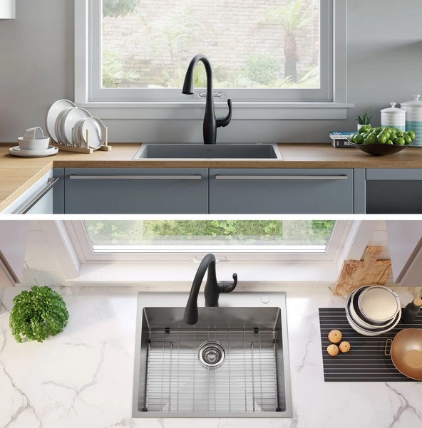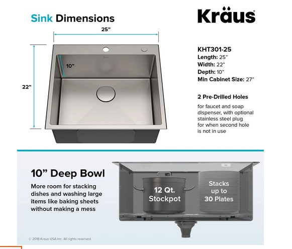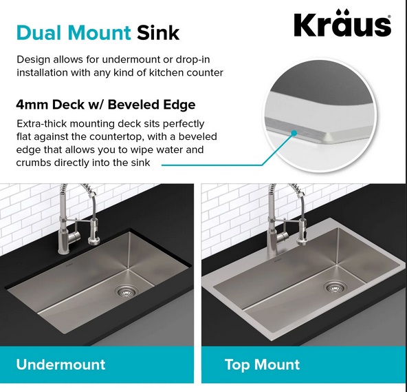 КОНСТРУКЦИЯ ВСТРАИВАЕМАЯ / ПОДМОНТАЖНАЯ: Идеально подходит для модернизации, конструкция с двойным креплением устанавливается в качестве встроенной раковины или встраиваемой раковины с любым типом кухонной столешницы.