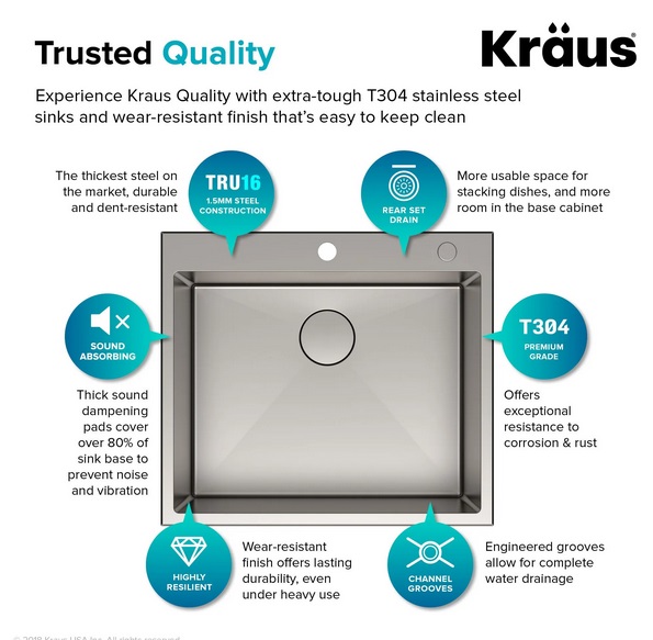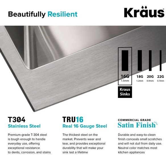 ПРОЧНАЯ СТАЛЬ 16 КАЛИБРА: изготовлена из сверхпрочной нержавеющей стали TRU16™, обеспечивающей длительный срок службы и превосходную устойчивость к вмятинам и повреждениям.
