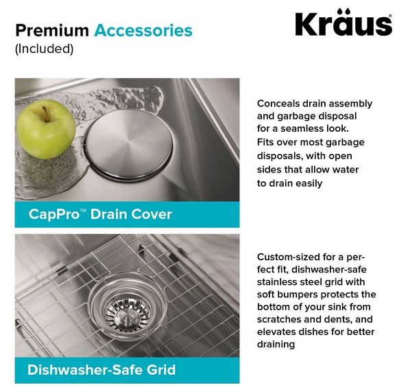 РЕКОМЕНДУЕМЫЕ АКСЕССУАРЫ (продаются отдельно): Повысьте функциональность вашей мойки с помощью набора аксессуаров для кухонной мойки, таких как мусоропровод (KWD100-75MBL), сворачиваемая сушилка для посуды (KRM-10BL) и расширяемая полка для кухонной мойки (KCD-). 1)