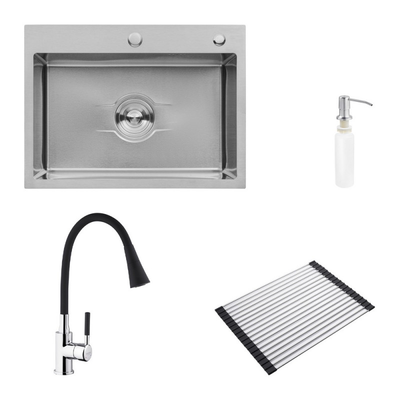 Мойка для кухни Kroner KRP Derby-5843HM Brush 58х43 см со смесителем и дозатором нержавеющая сталь
