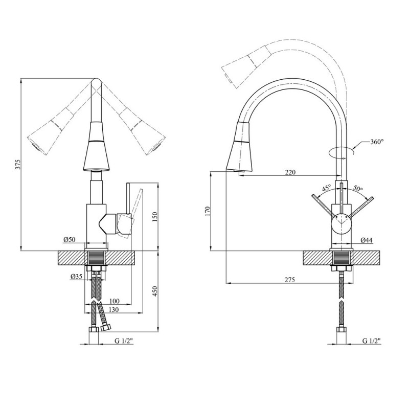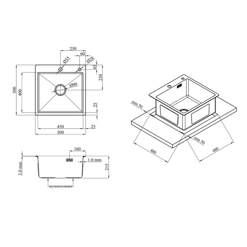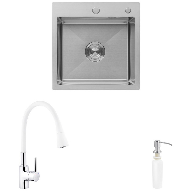 Мойка для кухни Kroner KRP Gebürstet-5050HM 50х50 см со смесителем и дозатором нержавеющая сталь CVS30112