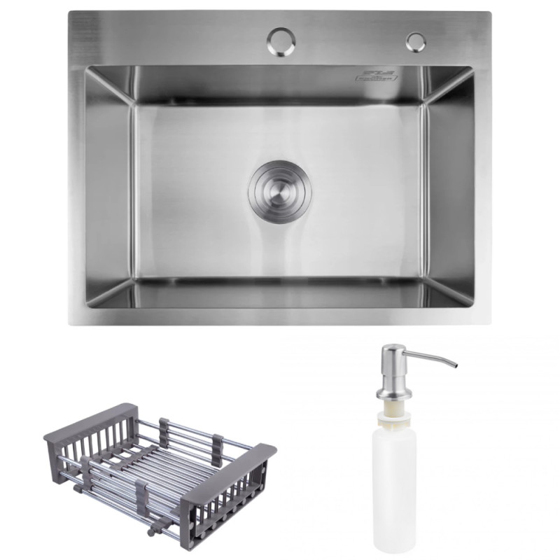 Мойка для кухни Kroner KRP Geburstet-5843HM 58х43 см с дозатором и сушилкой нержавеющая сталь