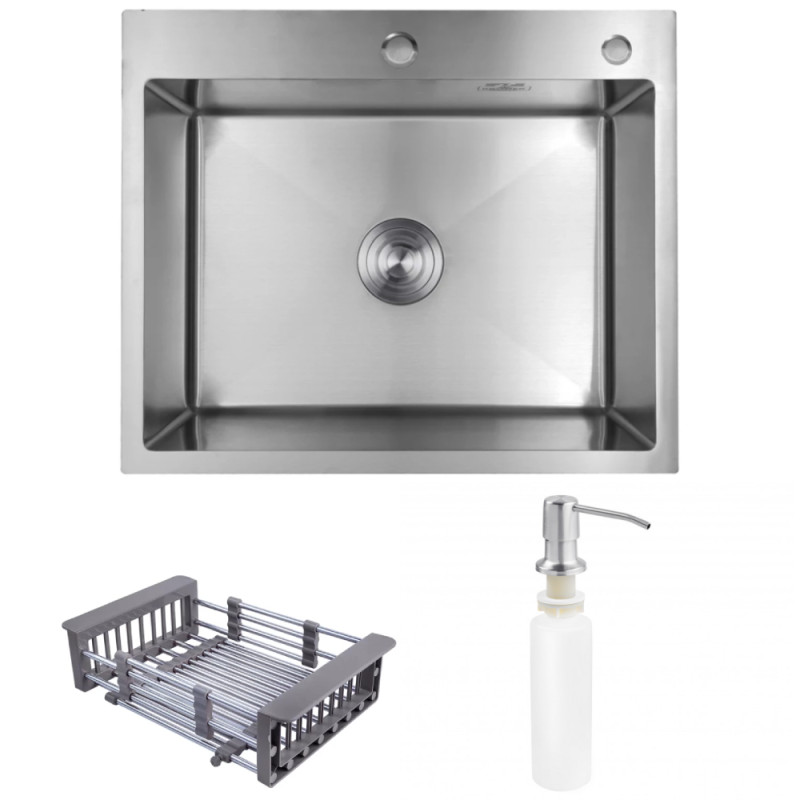 Мойка для кухни Kroner KRP Geburstet-6050HM 60х50 см с дозатором и сушилкой нержавеющая сталь CV022802