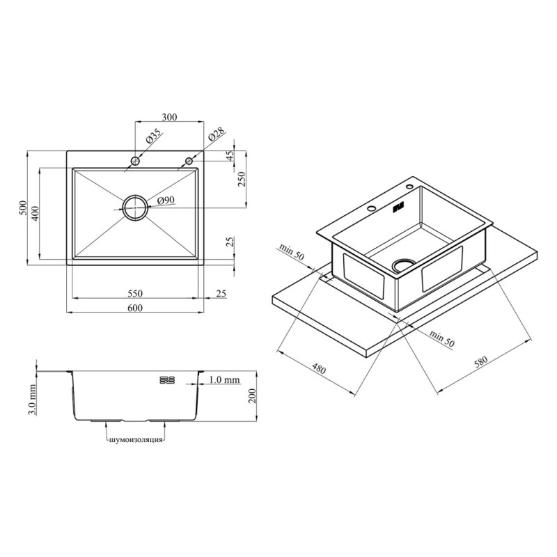 Кухонная мойка Kroner KRP Gebürstet - 6050HM (3.0/1.0 мм) – идеальный выбор для вашей кухни! Эта прямоугольная мойка с встроенным монтажом просто впишется в хоть какой интерьер. Изготовлена из высококачественной нержавеющей стали, обеспечивая длительный срок службы. Практическое приложение – встроенное отверстие для дозатора моющего средства. С мойкой от Kroner вы получаете не только функциональный товар, но и стильный аксессуар, который сделает вашу кухню еще более удобной и привлекательной.
