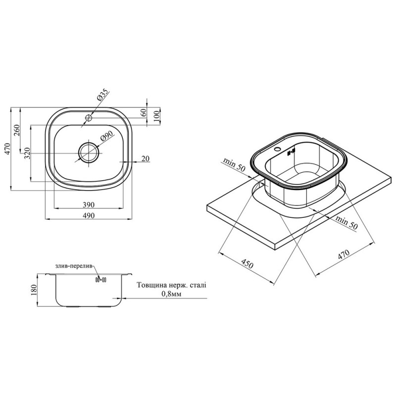 Мойка для кухни Kroner KRP Satin-4749080180 49х47 см нержавеющая сталь CV022758