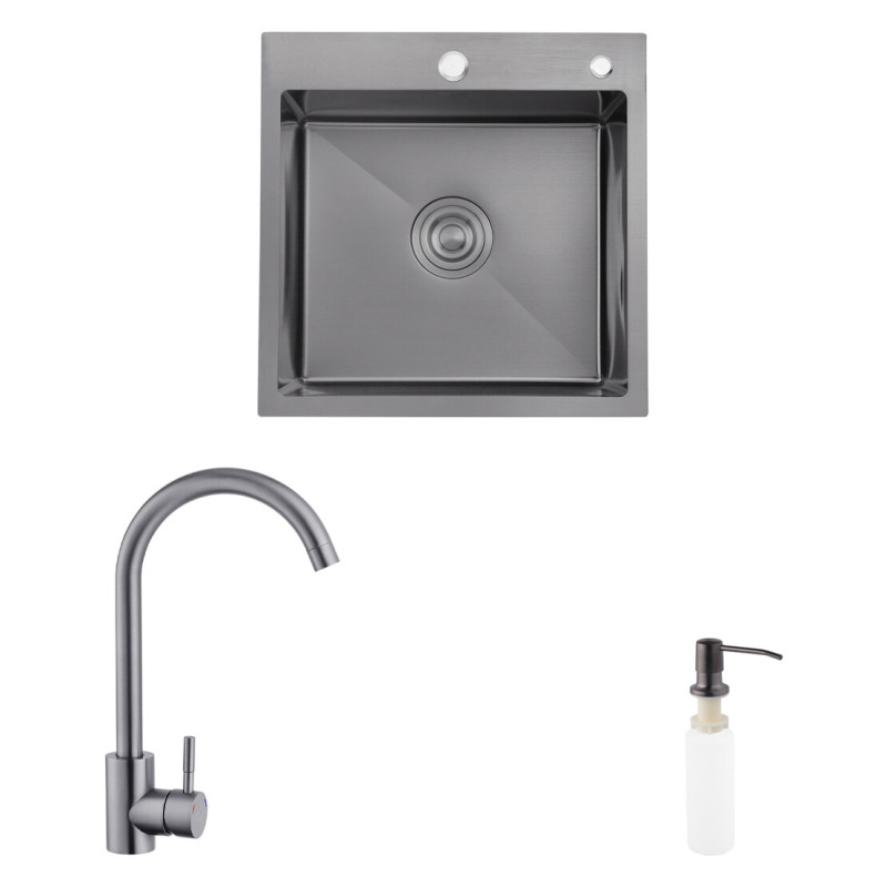 Мойка для кухни Kroner KRP Schwarze-4545HM 45х45 см со смесителем и дозатором нержавеющая сталь черный PVD CVS30136