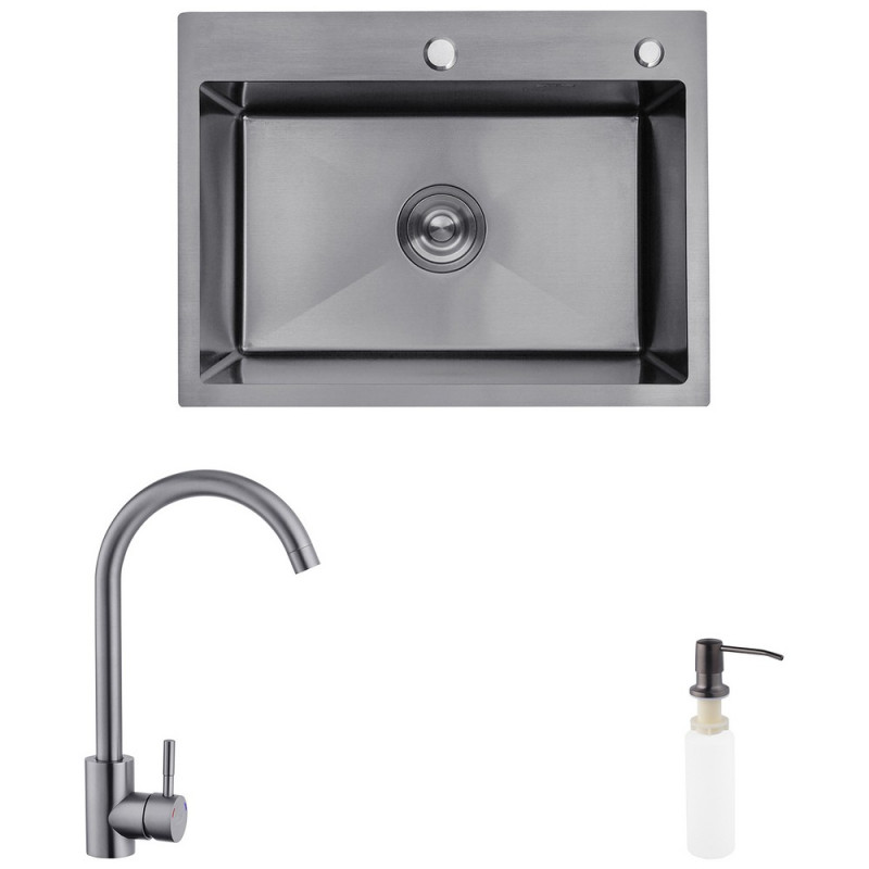 Мойка для кухни Kroner KRP Schwarze-5843HM 58х43 см со смесителем и дозатором нержавеющая сталь черный PVD CVS30113