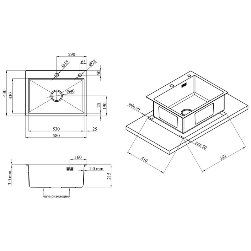 1) Мойка Schwarze-5843HM PVD