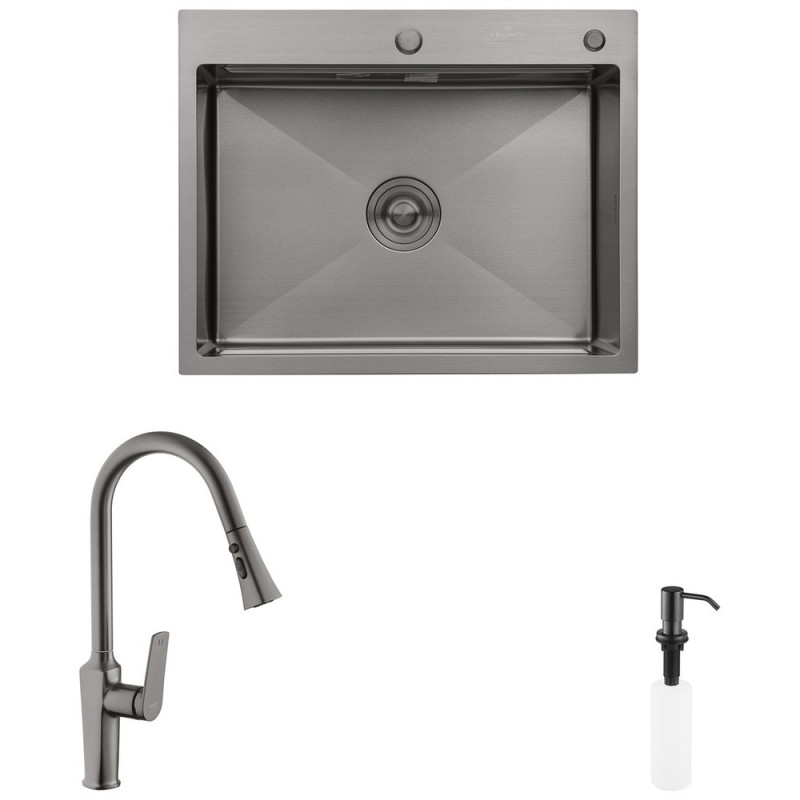 Мойка для кухни Kroner KRP Schwarze-6350HM 63х50 см со смесителем и дозатором нержавеющая сталь черный PVD CVS30075