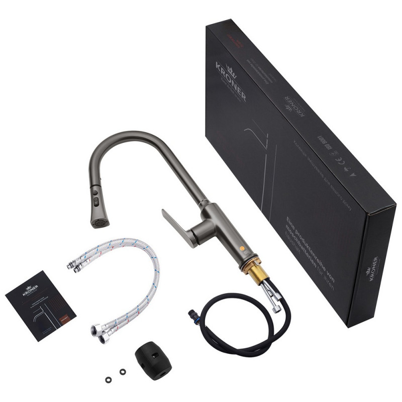 Kroner — это немецкий бренд, специализирующийся на производстве смесителей, моек и аксессуаров для ванной и кухни. Бренд ценится за немецкое качество, сочетающее современные технологии и строгий контроль производства с доступной ценой. Продукция Kroner отличается современным дизайном и практичностью, для её изготовления используются передовые технологии литья, гальванизации и шлифовки.