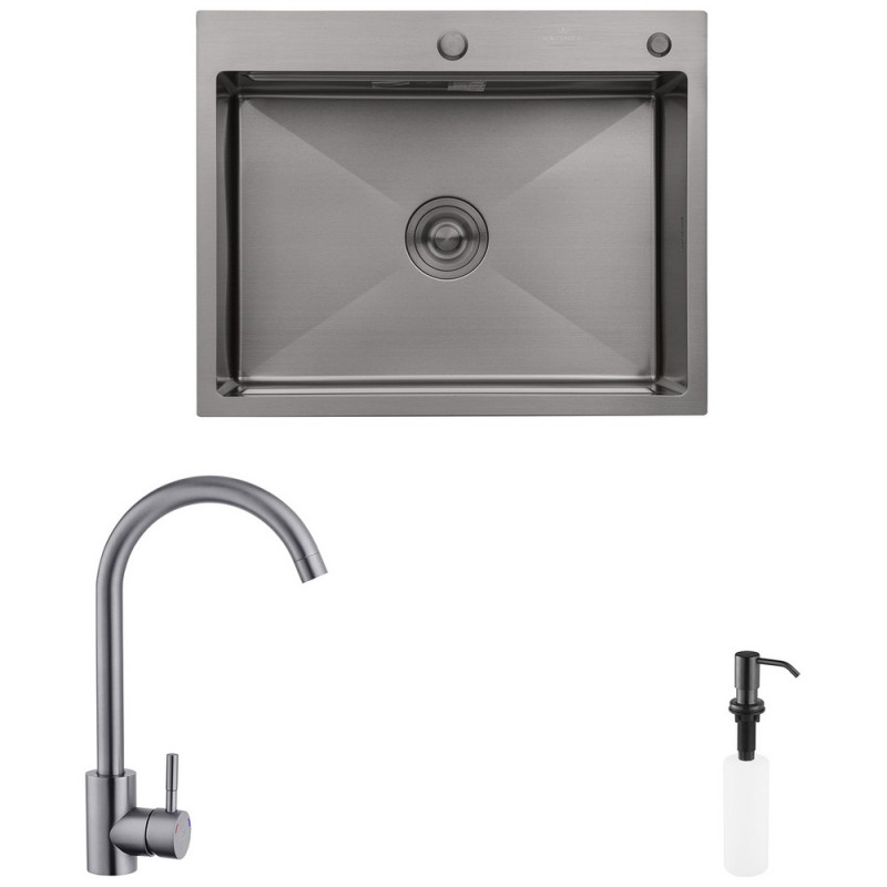 Мойка для кухни Kroner KRP Schwarze-6350HM 63х50 см со смесителем и дозатором нержавеющая сталь черный PVD