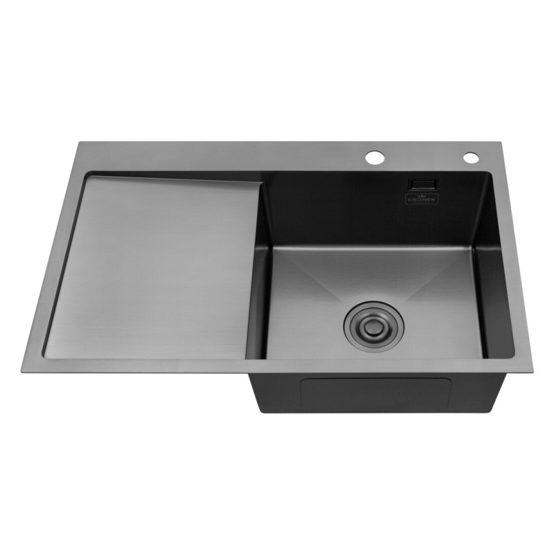 Мойка для кухни Kroner KRP Schwarze-7849RHM 78х49 см крыло слева нержавеющая сталь черный PVD