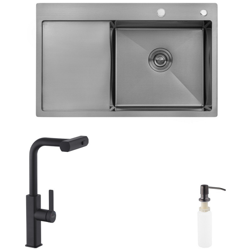 Мойка для кухни Kroner KRP Schwarze-7849RHM 78х49 см со смесителем и дозатором нержавеющая сталь черный PVD CVS30126