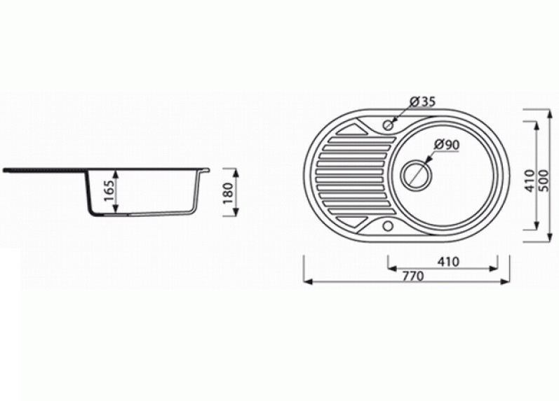 - Диаметр сливного отверстия, мм (дюйм): 90