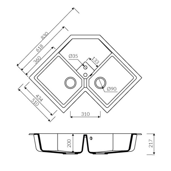 Мойка для кухни Marmorin Debra 2k 0,5o угловая врезная искусственный камень коричневый 436 213 004