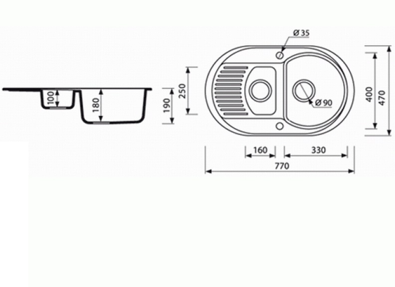 - Диаметр сливного отверстия, мм (дюйм): 90
