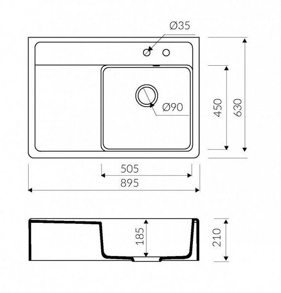 - Диаметр сливного отверстия, мм (дюйм): 90