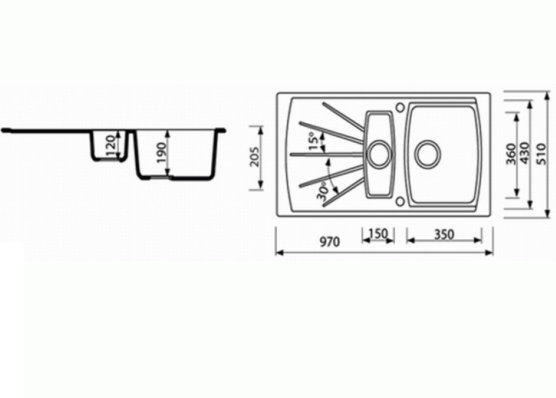 - Размер дополнительной чаши: 150х360х120 мм