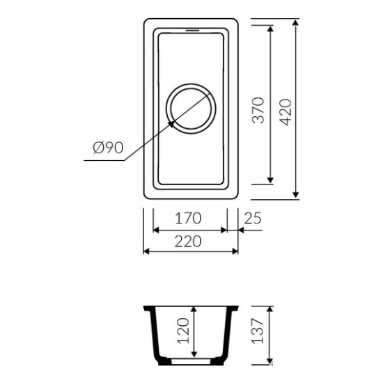 - размеры: 220x420x137 мм