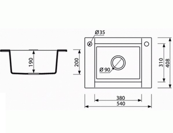 - Диаметр сливного отверстия, мм (дюйм): 90