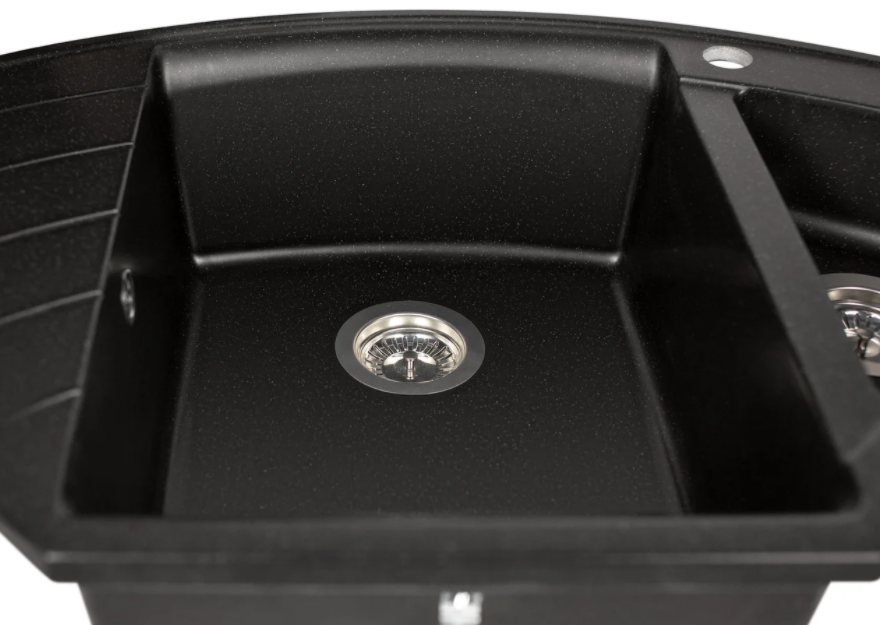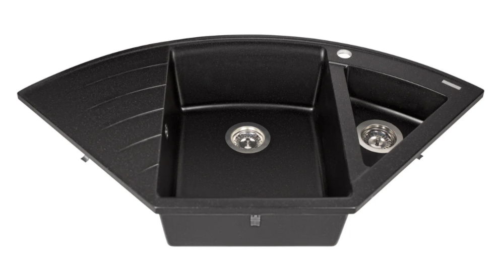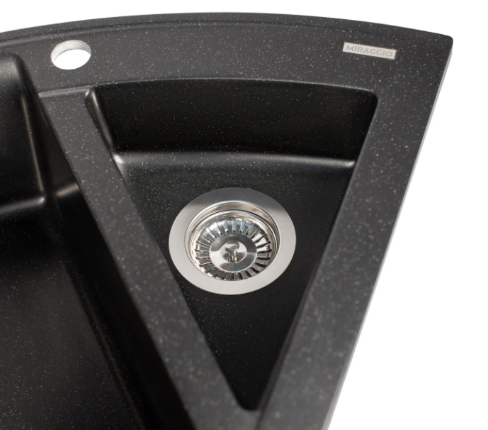 Угловая мойка Europe — это современная форма разработанная командой ТМ Miraggio. Такая форма получается за счет дополнительных крыльев и секций. Эти мойки очень вместительны, могут монтироваться как в углу, так и вдоль стены. Мойка Europe Black органично впишется в интерьер большой кухни.
