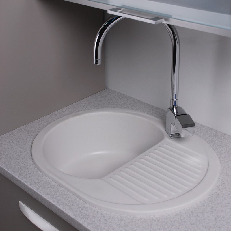 1) Мойка для кухни овальная Буль-Буль Yuta оборачиваемая врезная Магранит белый