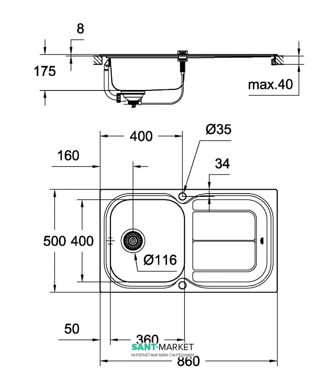 Практичная мойка - это центр удачно выполненной кухни. Мойка GROHE K300 из нержавеющей стали не только надежна и вместительна, но также обладает рядом умных характеристик. Она имеет два подготовленных отверстия под смеситель, что делает ее полностью оборачиваемой. Мойка предлагает большое внутреннее пространство, а глубина чаши составляет 17,5 см, что делает работу с крупными емкостями невероятно удобной. Кроме того, мойка обладает рядом инновационных решений для того, чтобы упростить вашу работу на кухне. Например, изоляция GROHE Whisper на нижней части мойки уменьшает шум, а автоматический мусоросборник с дистанционным управлением подразумевает, что вы можете вытащить пробку, не опуская свою руку в грязную воду. Мойка изготовлена из нержавеющей стали AISI 304, а само покрытие является матовым, что делает поверхность менее пористой и гарантирует более простое очищение мойки. Благодаря системе быстрого монтажа GROHE QuickFix установка мойки не займет много времени и не потребует дополнительного оборудования.