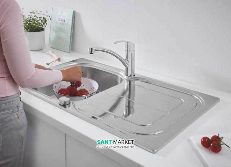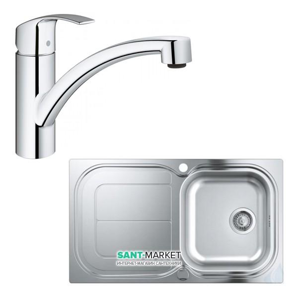 Кухонная мойка из нержавеющей стали со смесителем Grohe Eurosmart 31565SD0, матовая