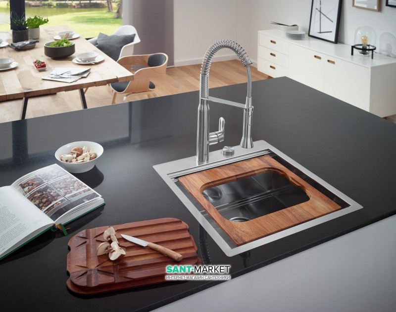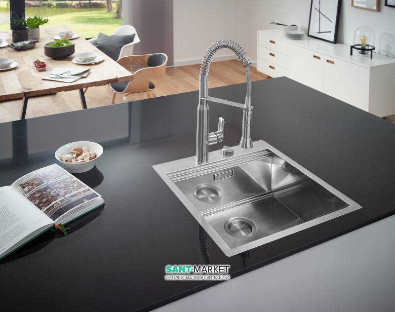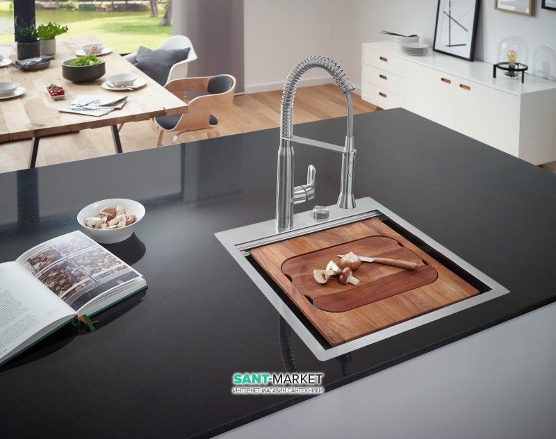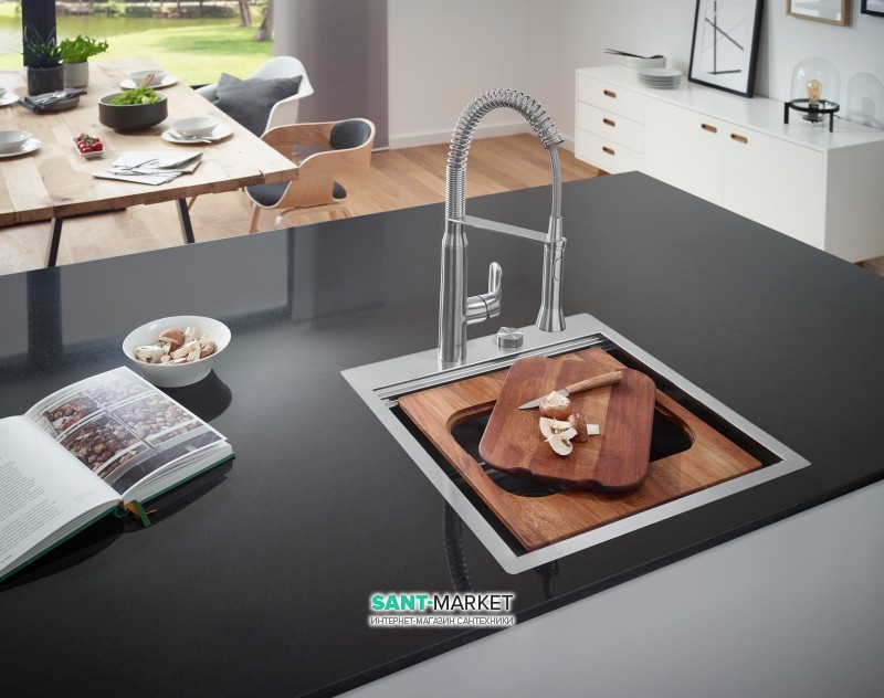 Мойка для кухни прямоугольная Grohe K800 врезная 1 чаша без корзинчатого вентиля нержавеющая сталь 31583SD0