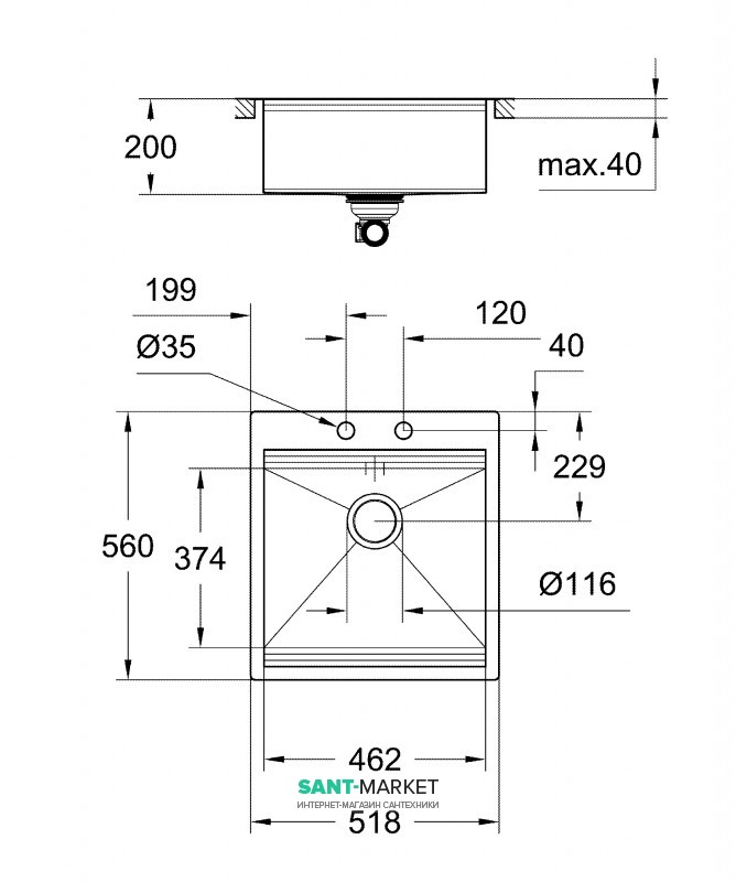 модель: K800 60-S 51.8/56 1.0 вид монтажа: в один уровень со столешницей материал: нержавеющая сталь AISI 304 (V2A) GROHE StarLight хромированная поверхность покрытие: сатиновое GROHE Whisper минимальный размер шкафа: 600 мм размер: 518 x 560 мм 1 чаша: 462 x 400 x 200 мм GROHE QuickFix быстрая монтажная система клапан-автомат аксессуары вкл.: клапан-автомат, сливной гарнитур, корзинчатый вентиль, монтажный набор