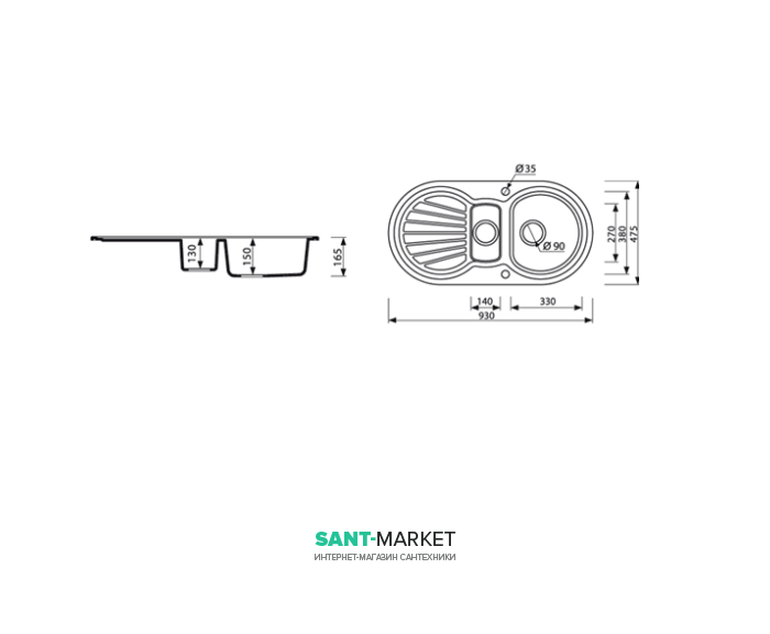 Мойка для кухни овальная Marmorin Korund 1 5k 1o крыло слева врезная искусственный камень 190 513 0xx