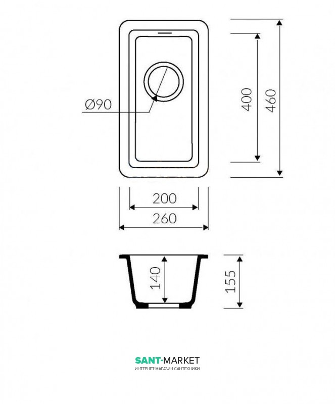 Мойка для кухни прямоугольная Marmorin Fado 0.5k врезная искусственный камень черный 425 100 002