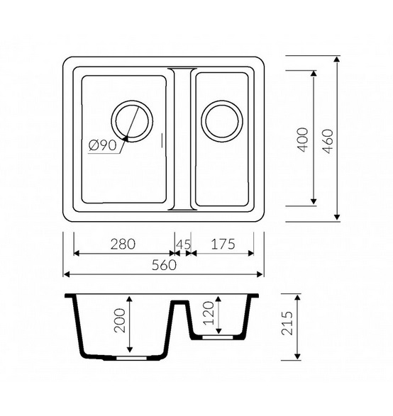 - Диаметр сливного отверстия, мм (дюйм): 90