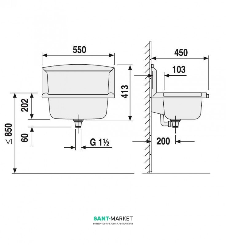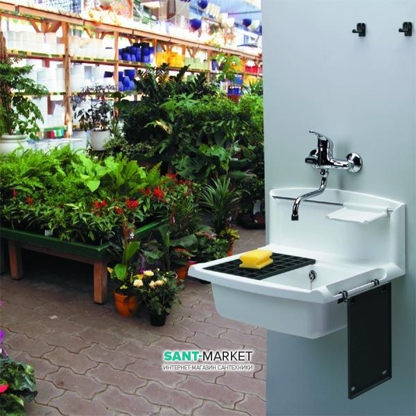 Мойка прямоугольная Sanit Multiset 55х45 хна стену (настенная) пластик белая 60.005.B6.0000