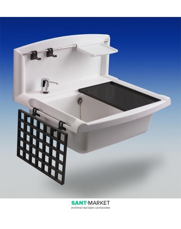 выпуск с пробкой, мыльницей, 2 крючками, решеткой, крепежи