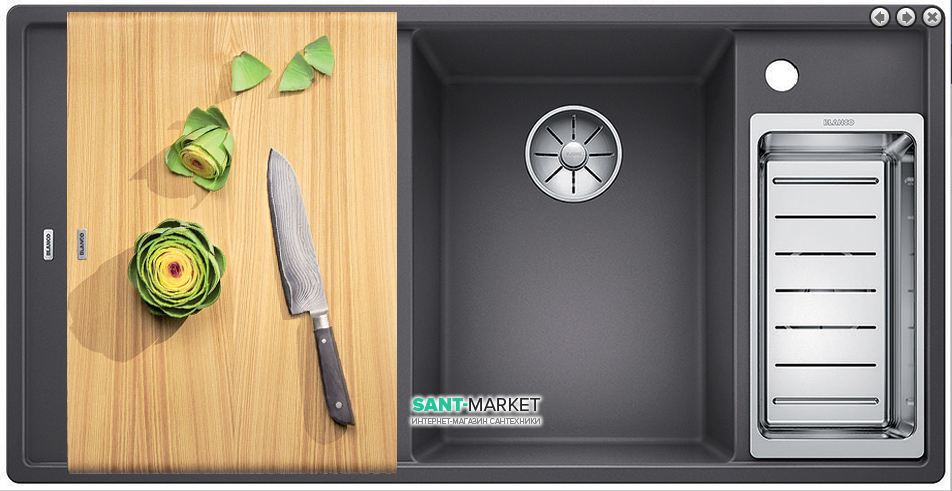 Мойка для кухни прямоугольная BLANCO Axia III 6 S-F SILGRANIT® темная скала 523484