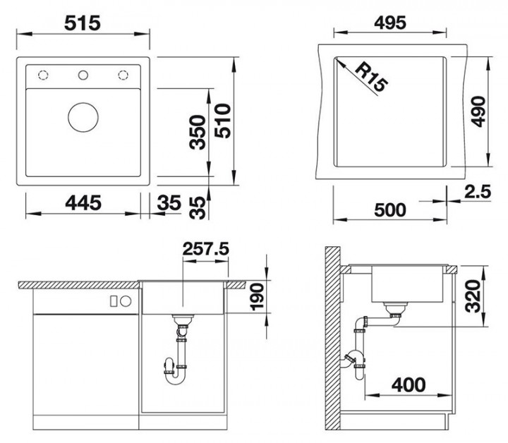 1) Мойка для кухни прямоугольная Blanco Dalago 5 Silgranit® PuraDur®