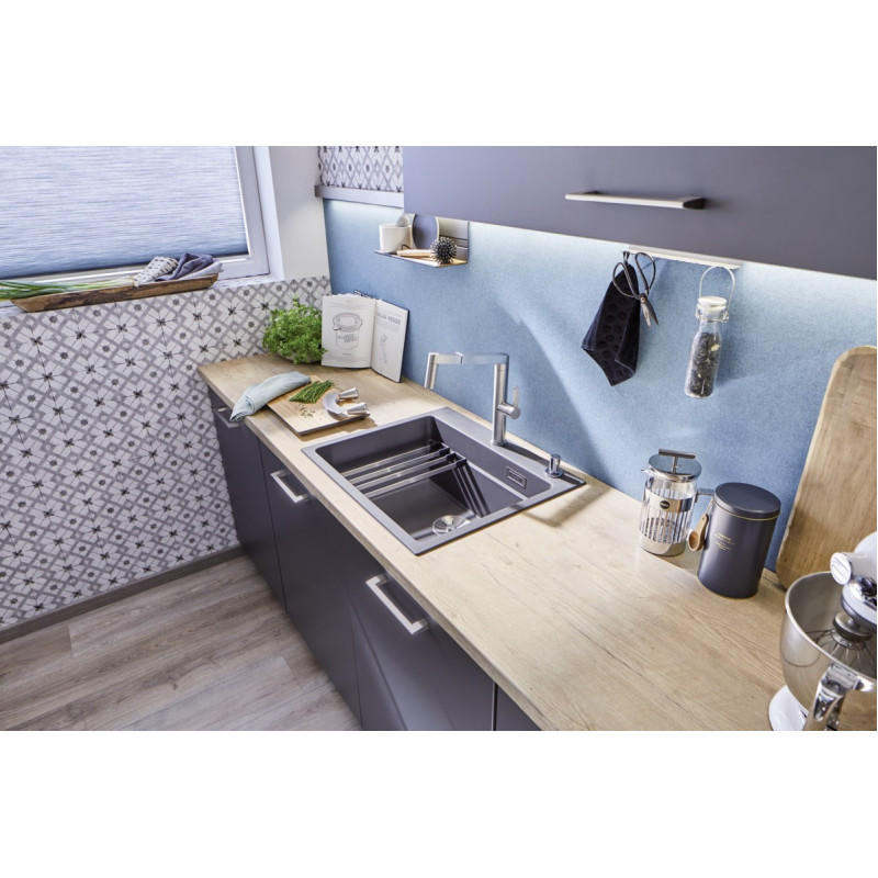 Кухонные моющие центры BLANCO сочетают разные аспекты для облегчения ежедневной работы: рациональное использование пространства, эргономичность, простоту в уходе, и, конечно же, отличный дизайн. Уникальный материал компании BLANCO SILGRANIT™ PuraDur™ отличается еще более измельченной фракцией кварца, являющейся самой твердой составляющей природного гранита. Такой обработанный кварц составляет 80% от состава материала SILGRANIT™ PuraDur™, что делает мойку очень крепкой и устойчивой к царапинам. Все компоненты этого уникального материала в процессе производства подвергаются дополнительной шлифовальной обработке. К тому же в состав материала SILGRANIT™ PuraDur™ входят новые присадки, увеличивающие грязе- и водоотталкивающие свойства. Таким образом, мойки сделаны из уникального материала SILGRANIT™ PuraDur™, обладают непревзойденной стойкостью к образованию царапин, пятен и отложению налета от воды и грязи, имеют 100% безопасность для продуктов и 100% устойчивость от выцветания под прямыми солнечными лучами. Конечно же, сохранены и свойства, присущие традиционному материалу SILGRANIT™, такие как устойчивость к температурам до 280°С, кислотам и красителям.