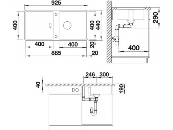 1) Мойка для кухни прямоугольная BLANCO JARON XL 6 S