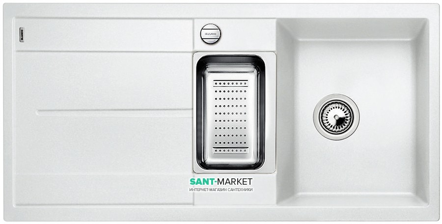Мойка для кухни прямоугольная BLANCO METRA 6 S SILGRANIT врезная с клапаном-автоматом белый 513046