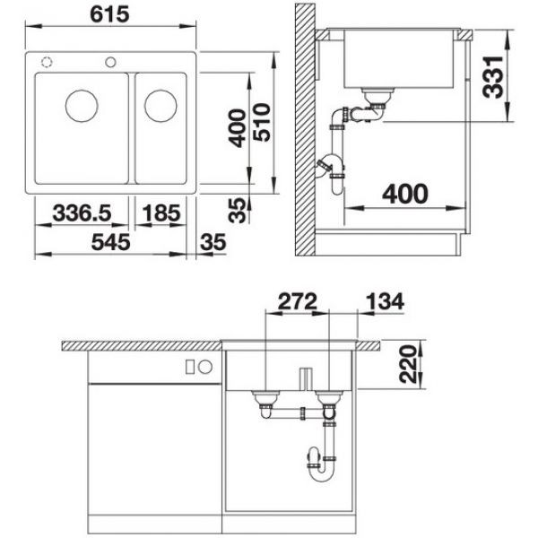 Мойка для кухни прямоугольная BLANCO PLEON 6 Split врезная искусственный гранит алюметаллик 521691