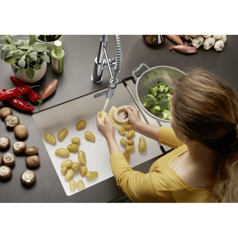 Элегантная мойка Subline 700-U изготовлена из натурального, удобного в эксплуатации материала SILGRANIT. Если установить ее в ряд с другими чашами и функциональными аксессуарами, композиция позволит эффективно организовать рабочее место. Благодаря новой технологии установки монтаж под столешницу выполняется легко и без дополнительных усилий. Максимальная вместимость чаши обеспечивает эргономичность и комфорт рабочего процесса на кухне. Отводная арматура с корзинчатым вентилем покупается отдельно.
