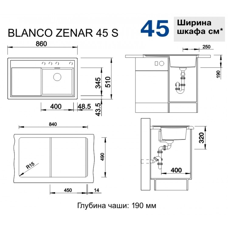 Концептуальный дизайн мойки Blanco Zenar 45 S в сочетании с функциональностью ставят ее в ряд самых стильных моделей бренда. Выполненная из гигиеничного композитного материала SILGRANIT PuraDur™, сверхустойчивого к любым механическим или химическим воздействиям и обладающего прекрасной шумоизоляцией, Бланко Zenar 45 S гарантированно прослужит Вам долгие годы, сохранив безупречный внешний вид. Функциональность модели, уникальные свойства материала SILGRANIT и возможность приобретения аксессуаров и смесителя в единой стилистике сделают покупку приятным и выгодным приобретением.
